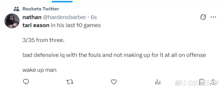 火箭球迷:伊森往常的10场比赛三分球35中3,三分射中率8.6%,凝视端智商也差频频犯规,蹙迫端更是一无是处。