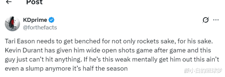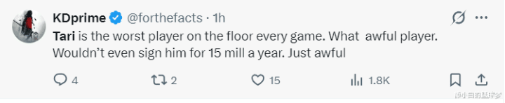 KD球迷:伊森是场上施展最差的球员,他是一个很灾祸的选手,就算给他每年1500万齐不值,他太差劲了。