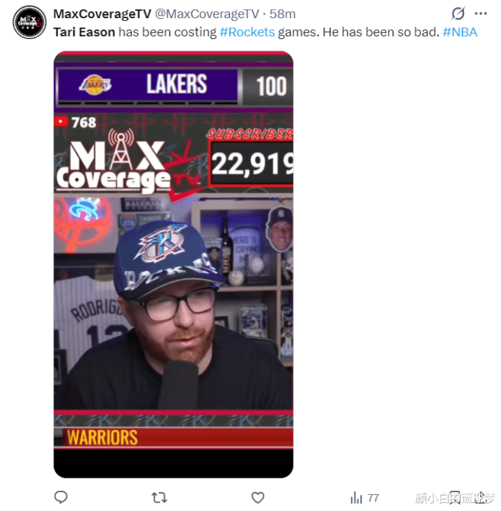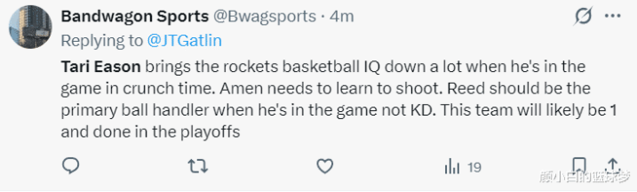 火箭博主:伊森在场一直给火箭负面的影响Z6尊龙,他的先发席位应该让给谢泼德。