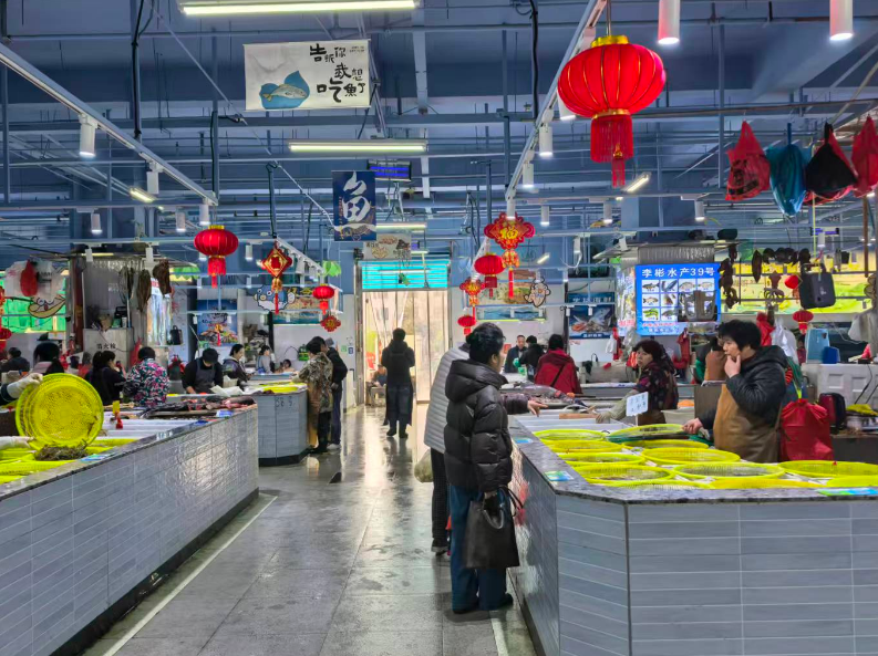 另外,在新农皆批发市集,水产摊位上最显眼的位置也摆着大盆螺蛳,这里唯有一种大小的螺蛳,售价为10元/斤。