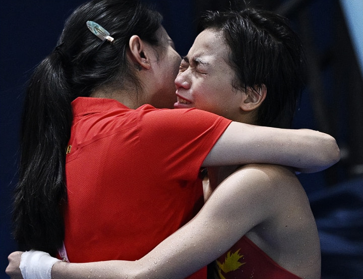 当比赛已毕后,对得益不酣畅的全红婵,径直扑进了教训陈若琳的怀里失声哀哭。