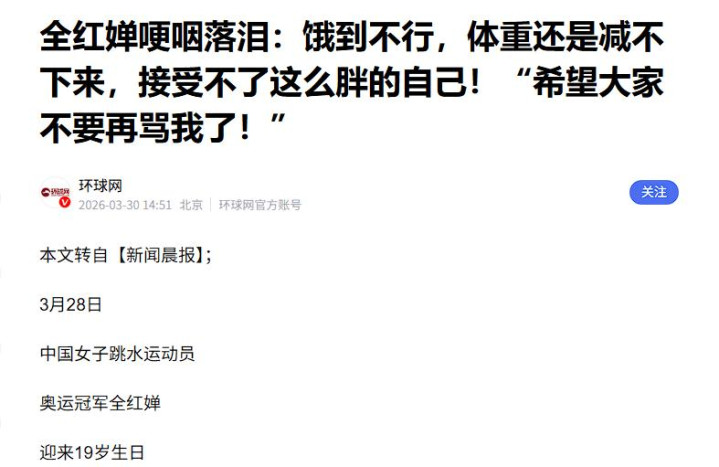 本文信息来源:环球网——全红婵抽血泪噎落泪:饿到不行,体重如故减不下来,摄取不了这样胖的我方!“但愿全球不要再骂我了!”