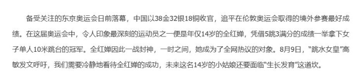全红婵说,弥远的高强度进修,把她的躯壳发育压得死死的,她17岁才迎来第一次生理期,比等闲女孩晚了三五年。