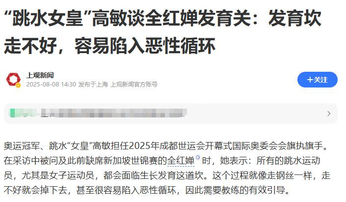 而全红婵资格的这一切,其实早就被跳水界的听说东谈主物高敏预判到了,何况在4年内,高敏曾两次公开请示过环球,仅仅当时代,莫得东谈主把这些话放在心上。